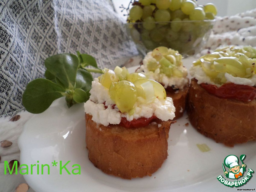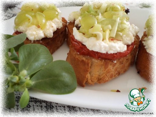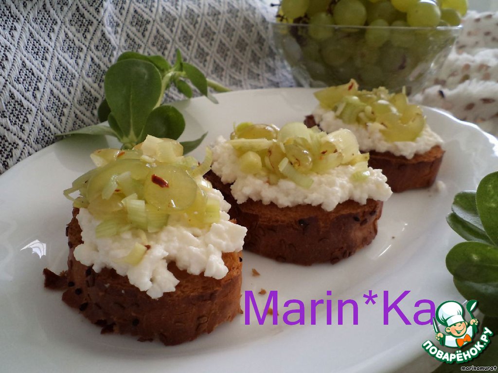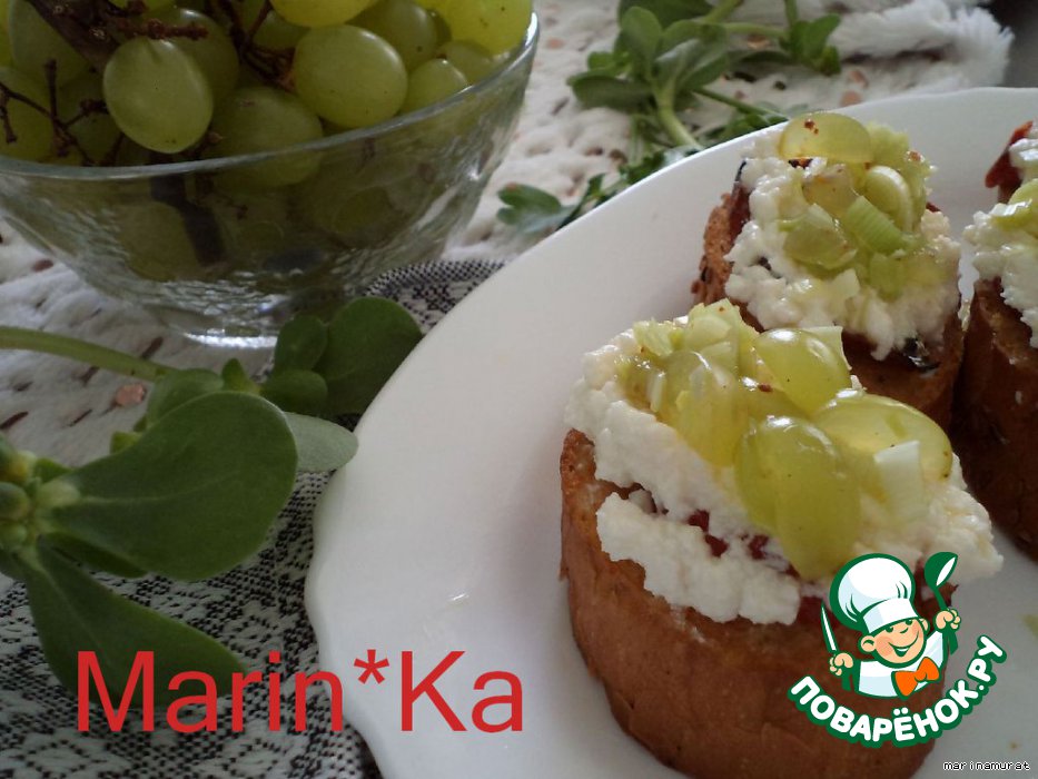Кростини с козьим сыром и виноградной сальсой