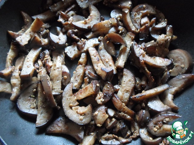 Я обжарила баклажаны с добавлением мускатного ореха, базилика и соли. Оставляем до полного остывания.