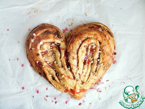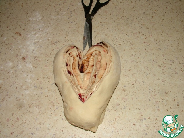 Разворачиваю сердечко (к этому времени удобнее перенести заготовку на противень застеленный бумагой). Впрочем, не мне вас учить делать плюшки )))