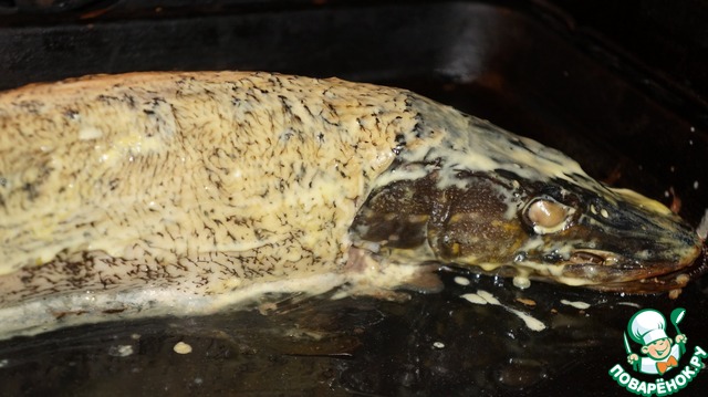 Время от времени промазываем нашу рыбку этой смазкой. Она даст приятную, золотистую корочку.