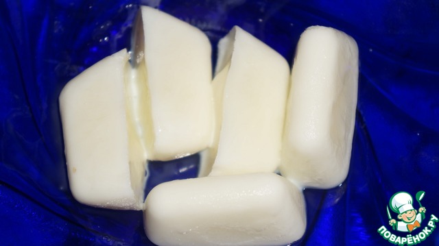 Теперь берем мясо с обеих щук и кожу с головой от первой и замачиваем это все в пол-литре молока. Через час молоко сливаем и заливаем свежим. Это нужно для того чтобы избавиться от запаха тины. Но если вас устраивает щучий запах, то можно не заморачиваться.