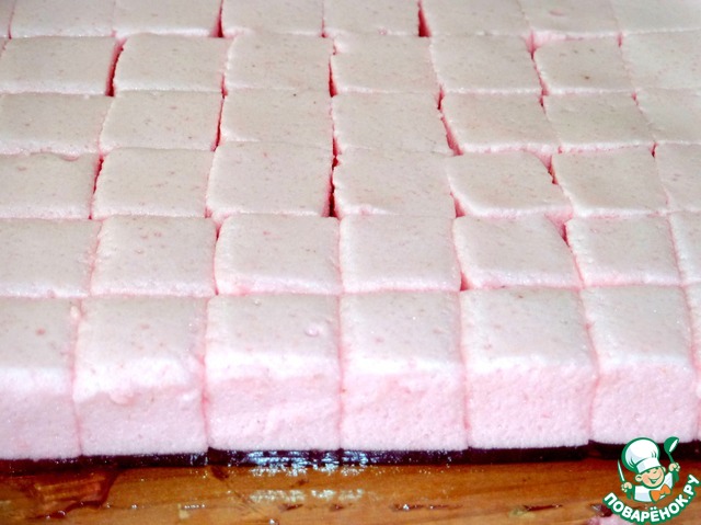 Готовый маршмэллоу порезать кубиками.