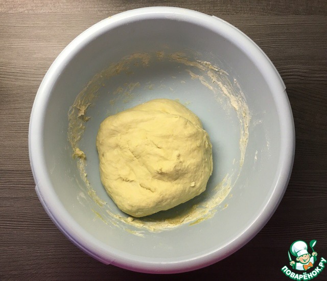 Тесто должно получиться эластичным, но немного прилипающим к рукам.