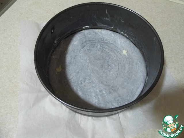 Форму застилаем пергаментной бумагой и смазываем дно и бока маслом или маргарином.