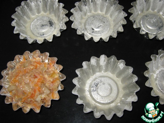 Формочки смазала маслом, присыпала мукой (можно формы силиконовые, проще кексы будет вынимать).