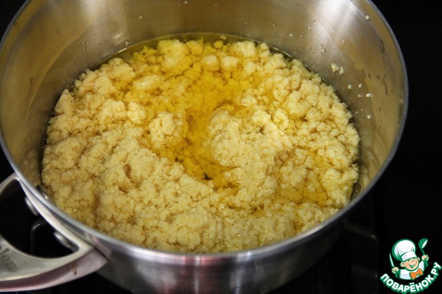 Затем доваляем приготовленный сахарный сироп и молоко с шафраном.