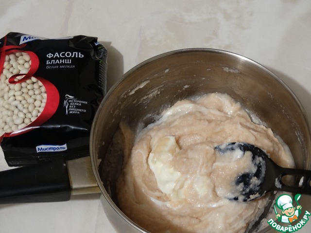 Фасоль отварить по рецепту. Еще горячую размять толкушкой и протереть через сито. Можно воспользоваться блендером.