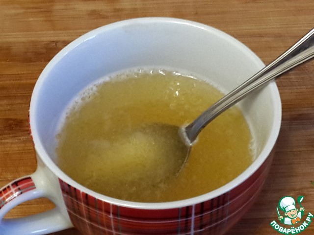Расчет продуктов дан на 2 формочки диаметром 10 см. Можно делать заливное в общем лотке, а потом нарезать его на порционные кусочки