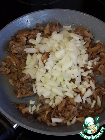 Для начинки обжарьте грибы с луком, приправьте их по вкусу солью, остудите