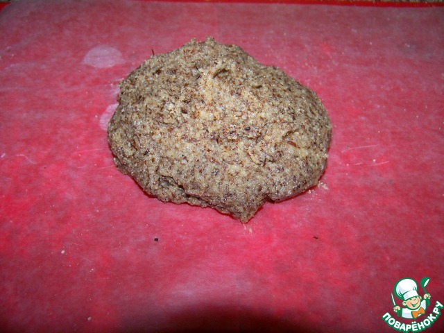 Вот такой колобок у нас получился. Завернём его в пищевую плёнку и оставим в холодильнике минут на 30.