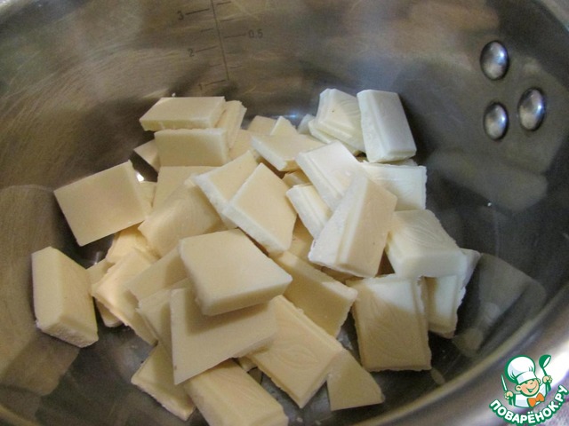 Белый шоколад растопить на водяной бане. Посолить. И слегка остудить.