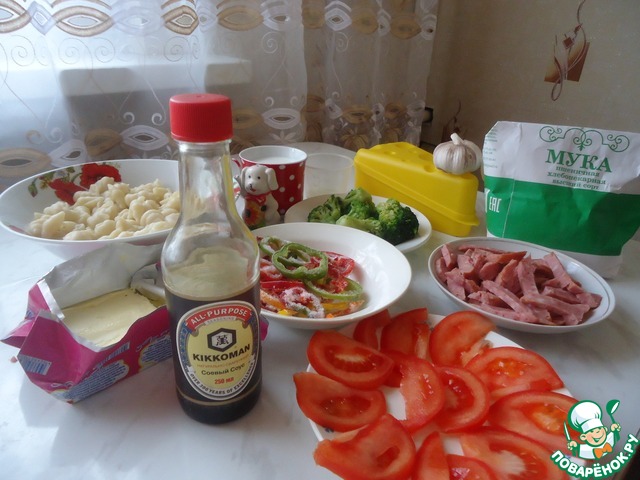 | Предлагаю вниманию поварят полноценное горячее блюдо, особенно хороший вариант для тех, кому надоели простые макароны на гарнир. Сливочный нежнейший вкус макарон в сочетании с овощами ваши домочадцы оценят на "отлично"! А соевый соус Kikkoman придает блюду свою изюминку, украшая привычный вкус. |