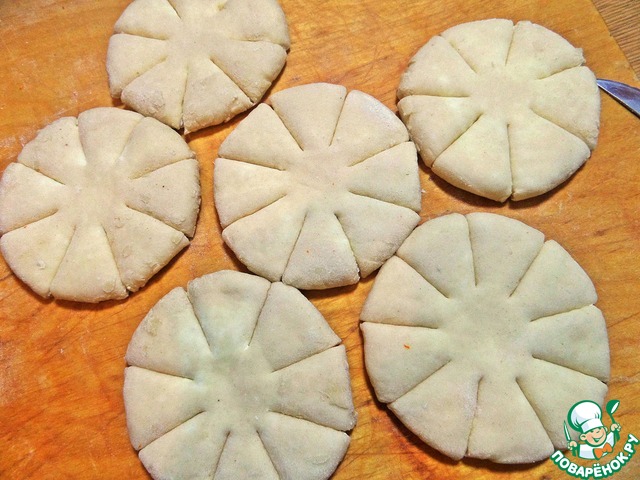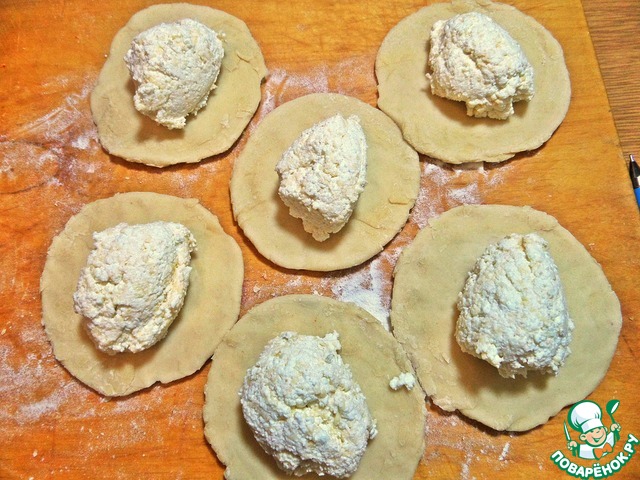 Удобнее окунуть пальцы в муку, чтобы не прилипали.