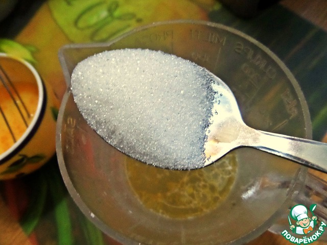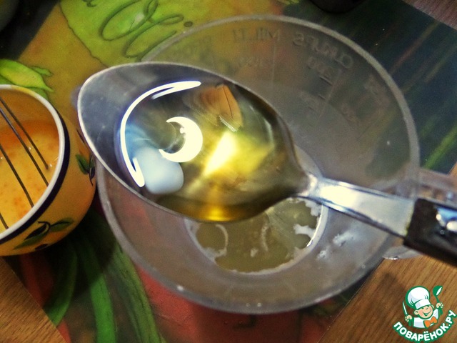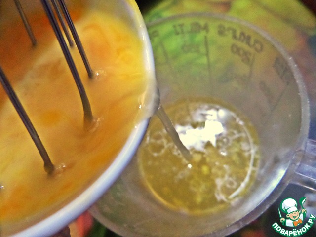 Отмеряем жидкий состав для теста: в тёплую воду добавим растительное масло без запаха.