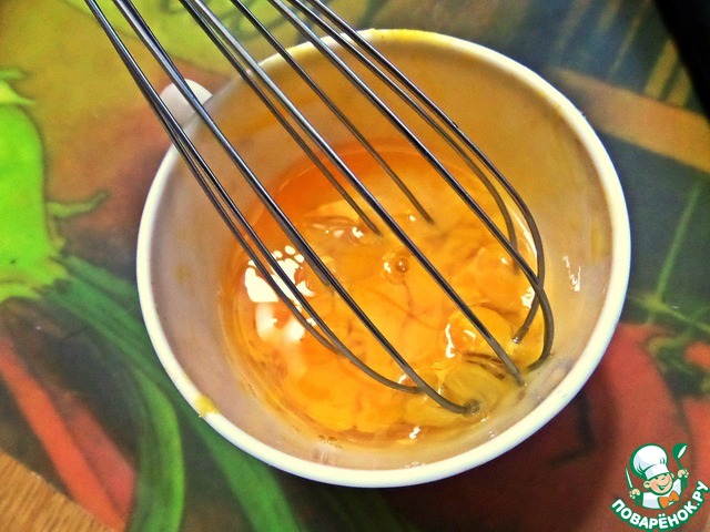 Половину яйца отлить для теста, а вторую половину-для верха.