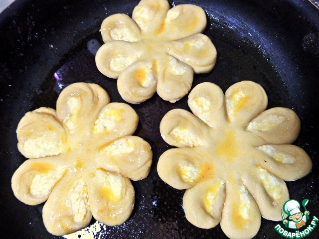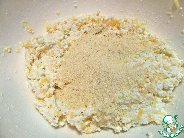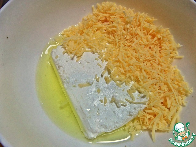 Соединить с творогом из пачки и белком. Можно и целое яйцо добавить, но у меня остался белок от предыдущего рецепта: http://www.povarenok .ru/recipes/show/122 863