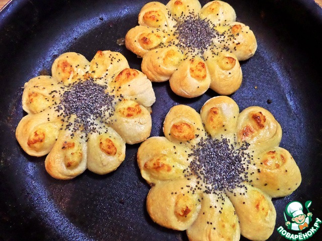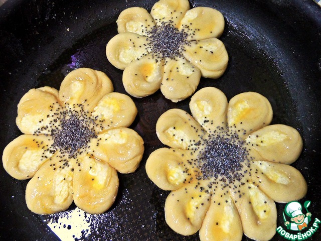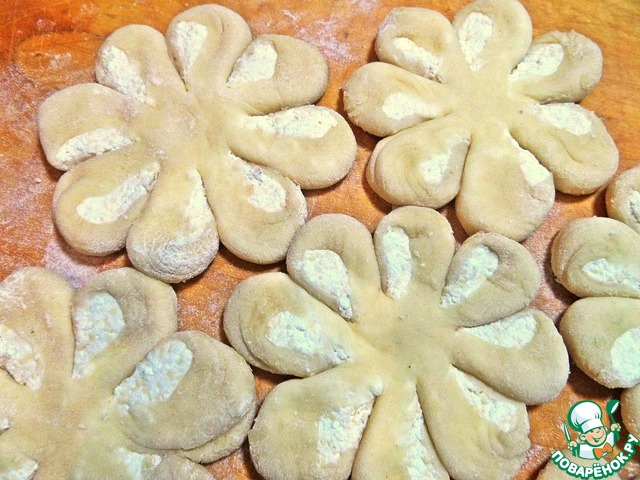 Перевернуть каждый лепесток, приплюснуть пальцем. Удобнее окунуть пальцы в муку, чтобы не прилипали.