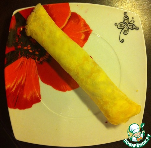 Сворачиваем трубочкой и нарезаем наискосок на порционные кусочки.