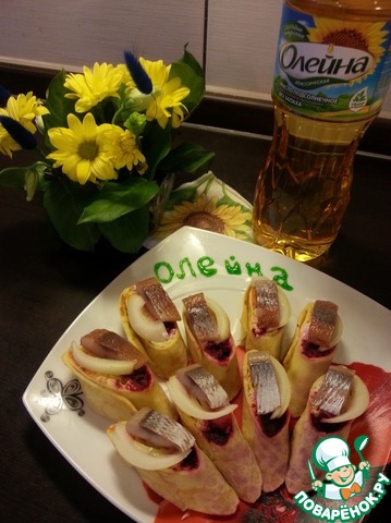 | Почему в весенней? Да потому, что весна на дворе, а с ней и масленица!!! Это очередной вариант всеми любимой селедки под шубой, только более деликатный, я бы даже сказала, женский. Приглашаю! |