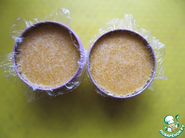 Выложить крем на песочную основу, до подачи хранить в холодильнике.
