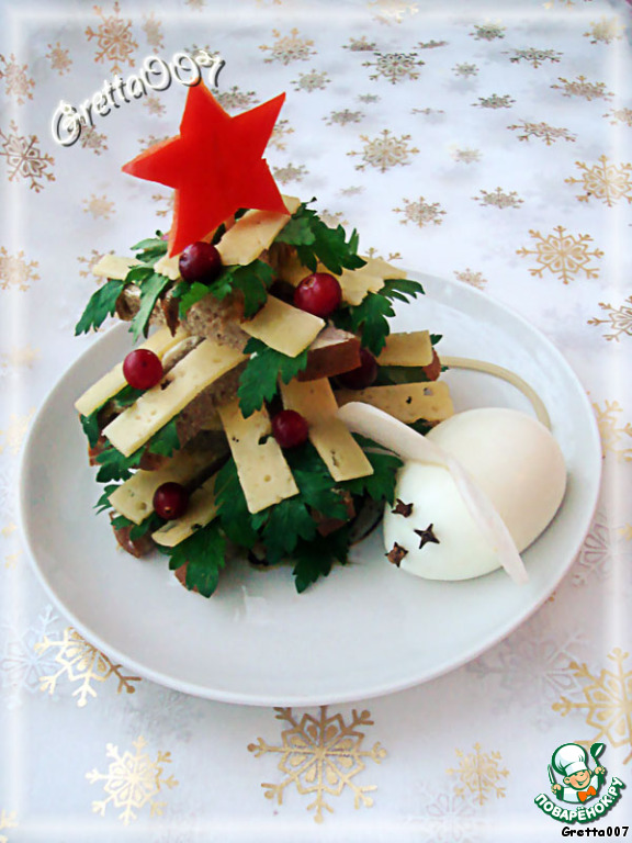 Продолжаем, пока не закончится хлеб. Завершаем елочку самыми маленькими бутербродами.