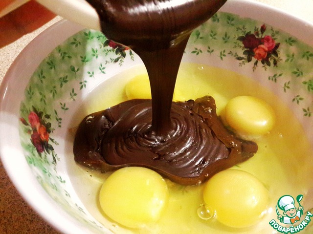 В форму, застеленную пергаментной бумагой влить смесь, и поставить в духовку на 30-40 минут.