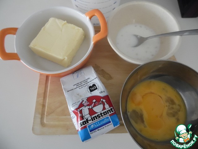 Добавляем 1яйцо+ желток, молоко с дрожжами и быстро вымешиваем тесто..