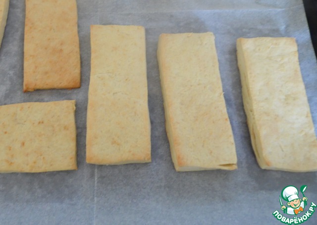 Затем раскатываем в прямоугольник, и вырезаем нужной формы чётное число частей, т. к пирожное состоит из двух коржей. Выпекать 180гр.15 мин. Достать, остудить.