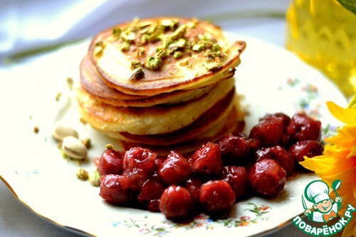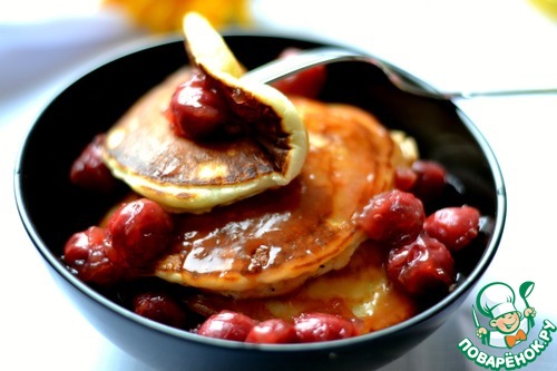 | Нежные оладушки, хороши горячие и холодные! Интересные получились вишни, с таким аппельсиновым послевкусием. Для любителей сладкого самое то! |