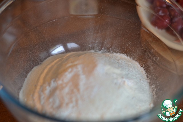 Мучную смесь смешать с жидкой смесью. Перемешать и оставить на 30 минут.