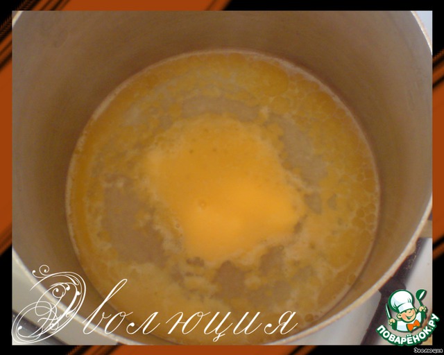 Воду выливаем в алюминевую кастрюльку, немного солим и кладем туда мелконарезанный маргарин.