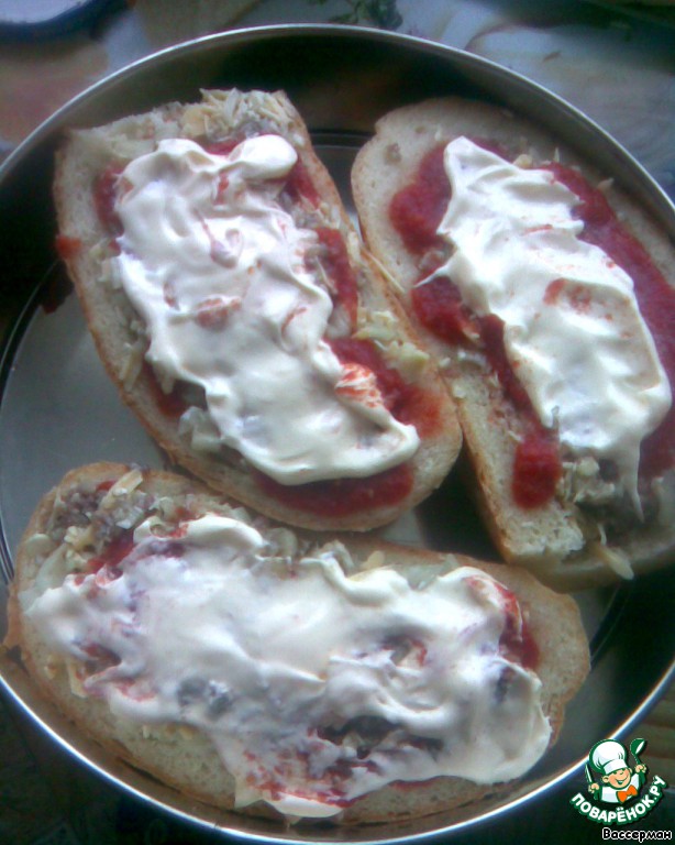 | Да простят меня гурманы, но решилась прибавить к тысяче горячих бутербродов и свой вариант. Семья была в восторге, да и я, честно говоря, не ожидала, что получится ТАК вкусно! |
