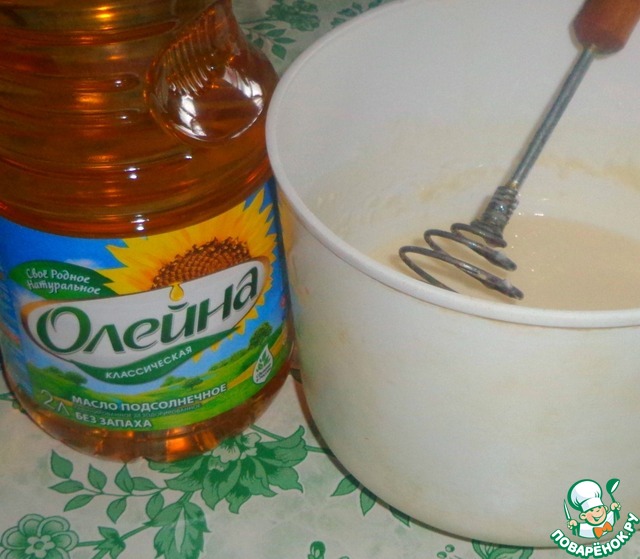 Приготовить тесто для блинов по своему любимому рецепту. Обязательно добавьте в тесто подсолнечное масло, чтобы блины не прилипали к сковороде. Я использовала для приготовления блинов подсолнечное масло ТМ Олейна.