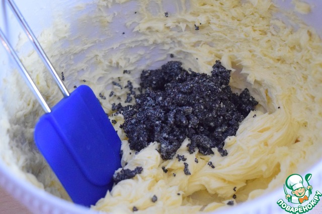 Добавить остывшую маковую начинку, перемешать до однородного состояния лопаткой.
