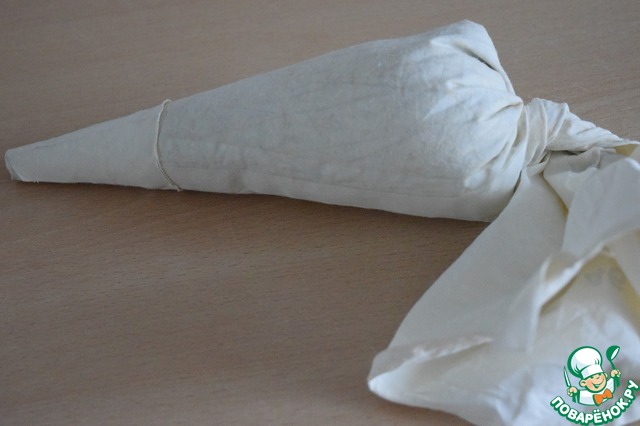 Наполнить маково-масляной начинкой кондитерский мешок и оставить при комнатной температуре.