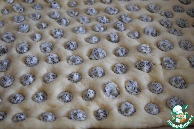 С помощью кондитерского мешка, заполняем лунки маково-масляной смесью.