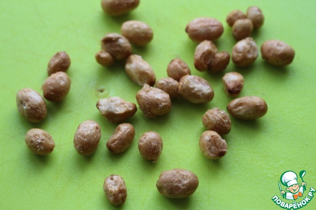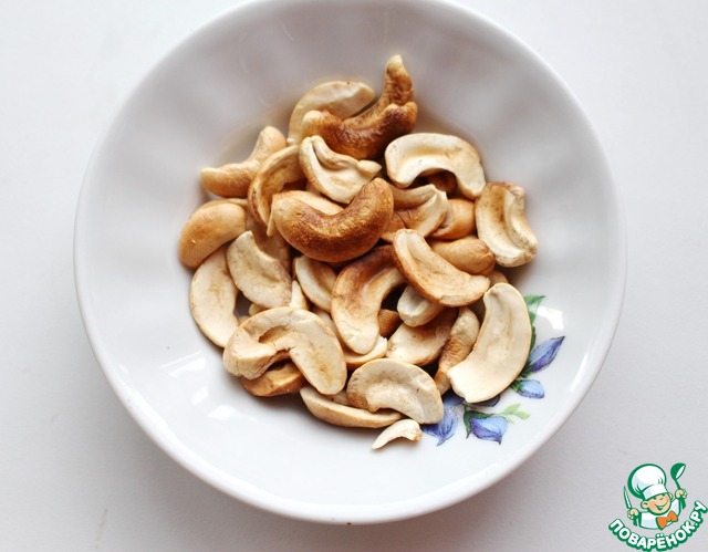 40 г орехов подсушить на сухой сковороде или в духовке до золотистого цвета. Дать остыть.