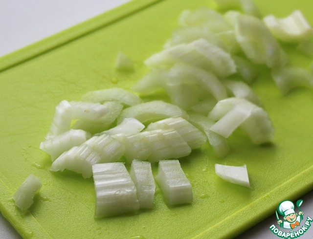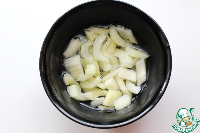 Смешать белый винный уксус, воду, белое вино и сахар и довести до кипения, залить сельдерей и дать остыть при комнатной температуре. Маринад слить.