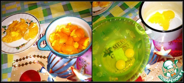 Вливаем апельсиновый "жмых" во взбитые яйца. Перемешиваем.