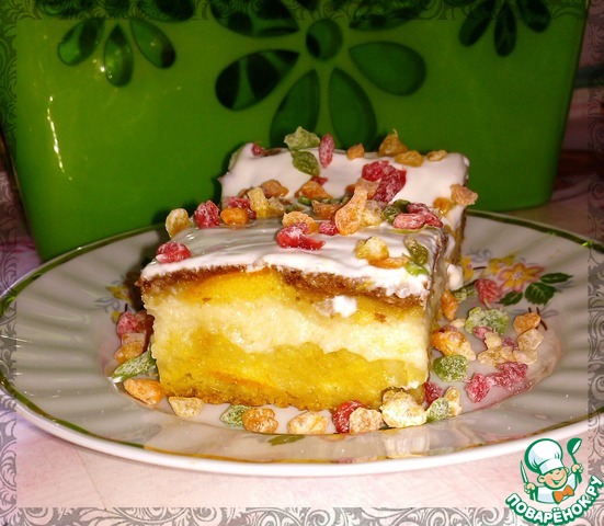 Внутри крем получается тягучим, не растекающимся. Манка в готовом блюде не чувствуется! Кто пробовал все отвечают, что торт с творогом:D