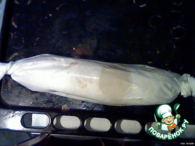 Закрываем верхней половинкой багета и плотно заворачиваем фольгу