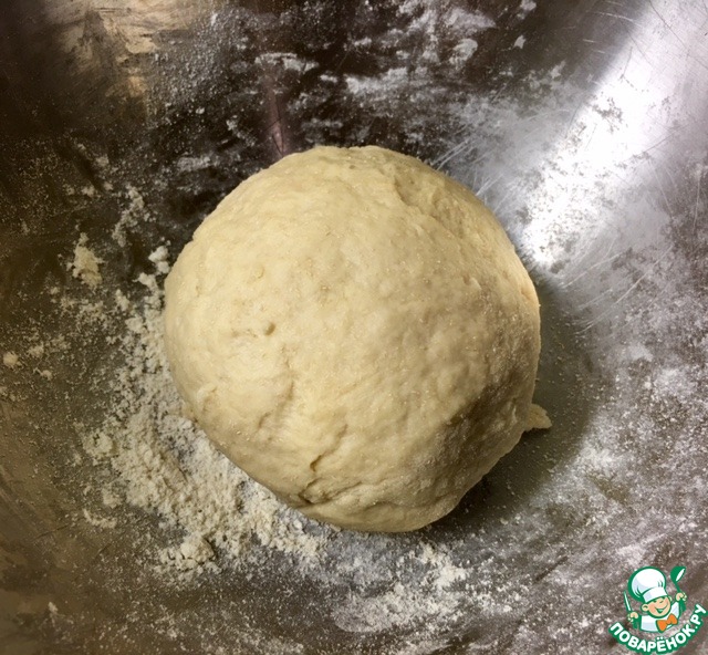 Возьмите тесто. Разделите на 2 части. Одну уберите на второе пиде. Другую половину раскатайте очень тонко!