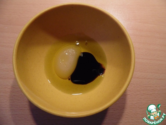 Оливковое масло смешать с бальзамическим уксусом и соком лимона.