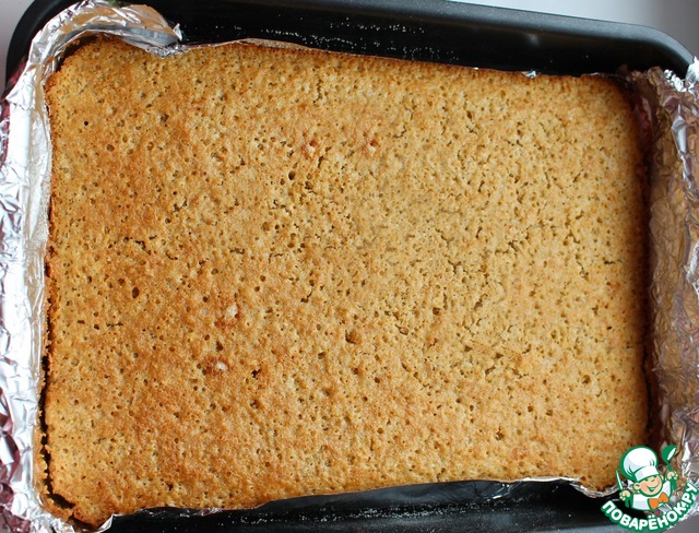 Прямоугольную форму (у меня размером 30 на 24) проложить пергаментом или фольгой и смазать растительным маслом. Вылить тесто и равномерно распределить.