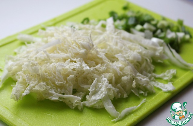 Пекинскую капусту и зеленый лук нарезать не крупно.