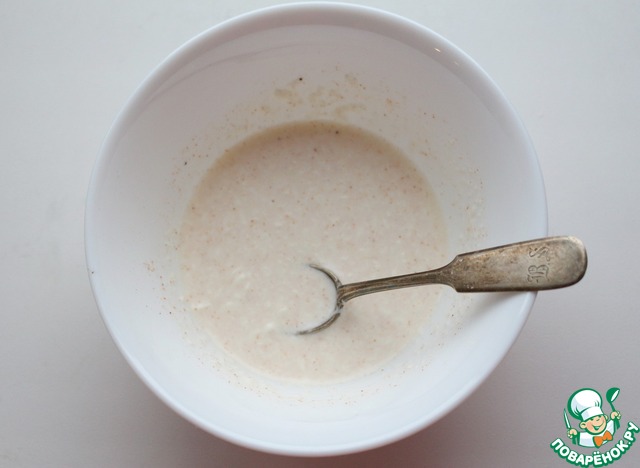 Для заправки смешать майонез, сметану, рассол и перец чили. (Соль я не добавляла.)