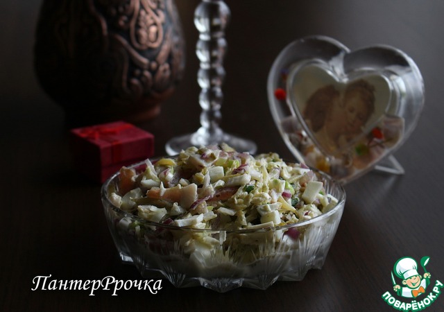 | Очень вкусный, пикантный, сытный, гармоничный и аппетитный салат... Подходит как для повседневного, так и для праздничного стола. |