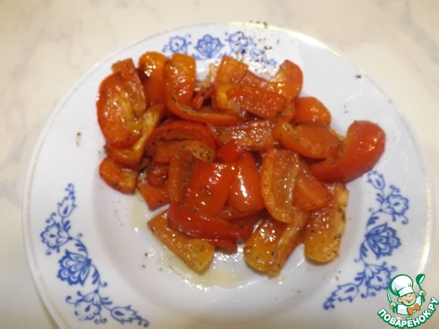 Болгарский перец очистить от плодоножки и нарезать брусочками. Также обжарить на сливочном масле до полуготовности, чуть присаливая.