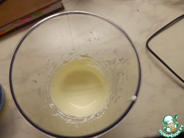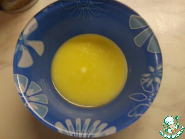 Растопить 50 г сливочного масла в микроволновой печи. Добавить к желтку и еще раз аккуратно взбить.