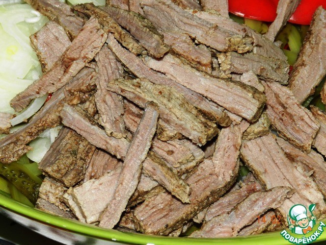 | Шикарный, праздничный салат Садаф - в переводе "Жемчужный", очень прижился в нашей интернациональной семье. Попробовав его в известном московском ресторане, я не смогла с ним расстаться!!! Готовится очень легко, его сможет приготовить даже любящий мужчина на предстоящий женский праздник. Праздничный салат с нежной говядиной, добавлением сладкого перца и маринованных огурчиков - очень свежее сочетание знакомых нам продуктов!!! Попробуйте, и, возможно, вы, как и я, влюбитесь в него!!! |
